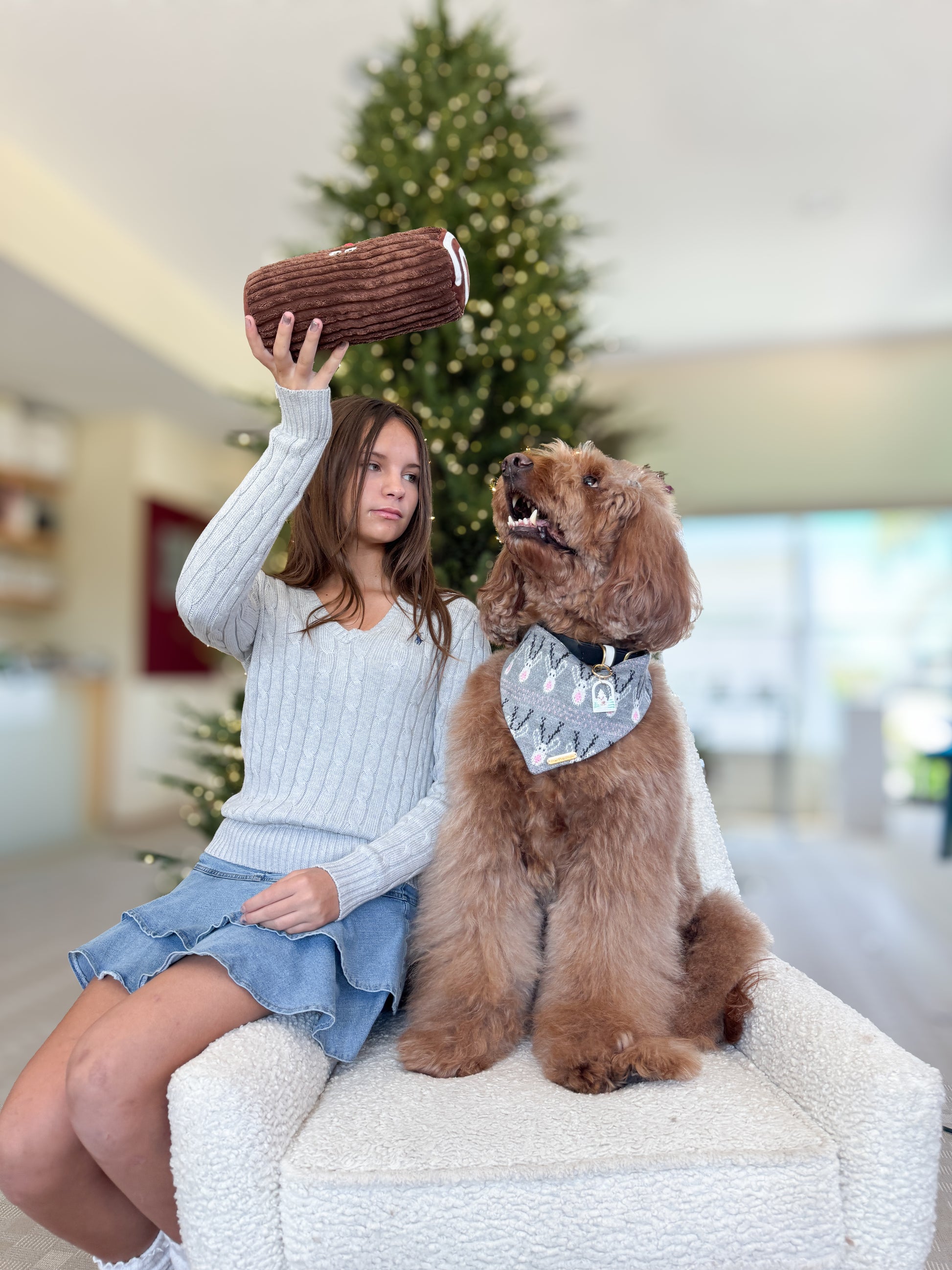 Wrap your pup in cozy holiday cheer with the Deer To Me Bandana. Crafted from soft jacquard knit fabric, its charming design features adorable reindeer and a festive sleigh 🛷 bringing all the cuteness of a Christmas market stroll to your furry friend. Perfect for spreading smiles and holiday joy wherever you go!