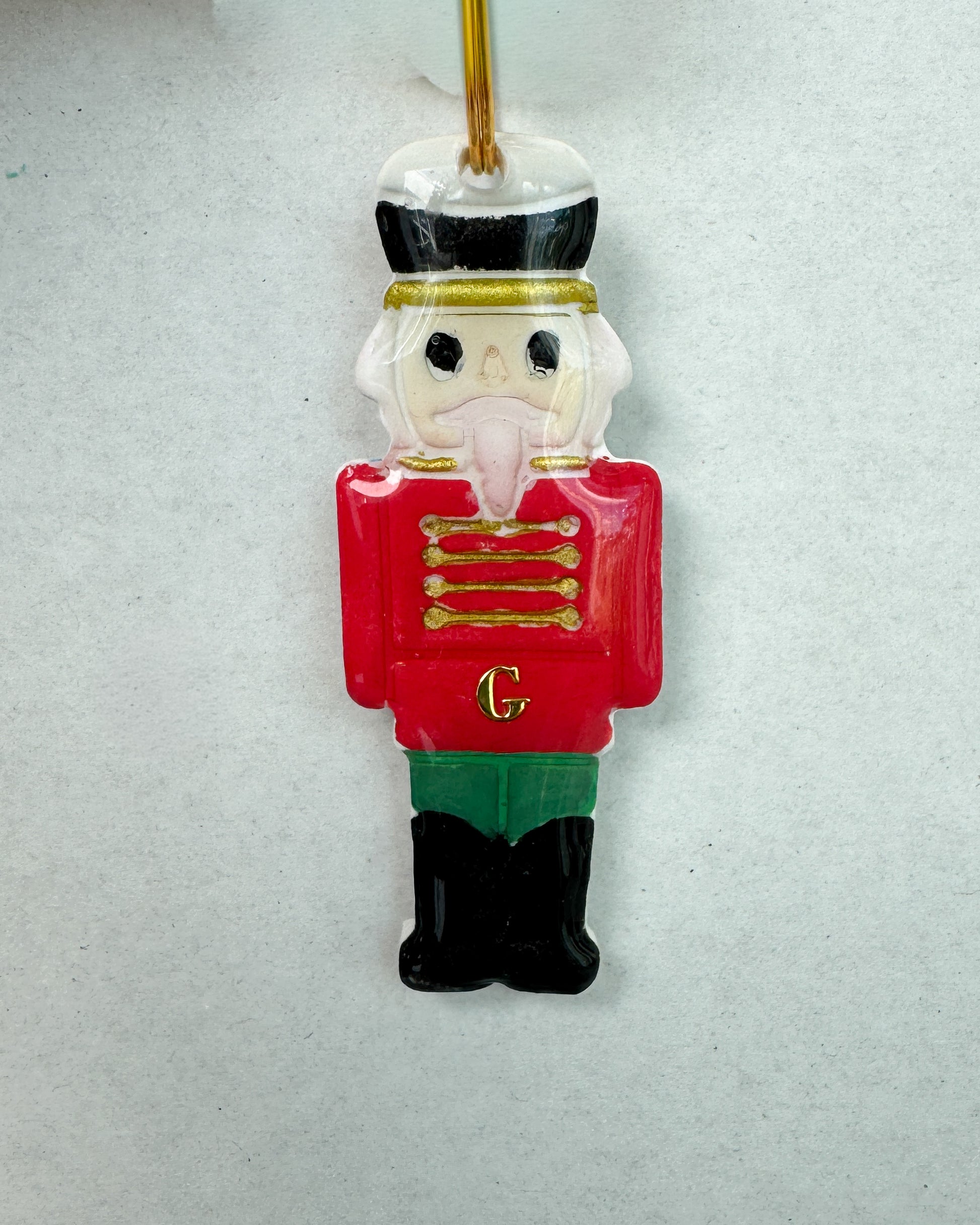 Bring holiday cheer to your pup’s style with the Nutcracker pet ID tag! This tag shines brightly on its own or pairs perfectly with the Clara bandana for a festive look that’s full of charm. Each nutcracker is personalized with your pup’s gold initial on the front and their full name on the back in elegant black script. Size: 2”