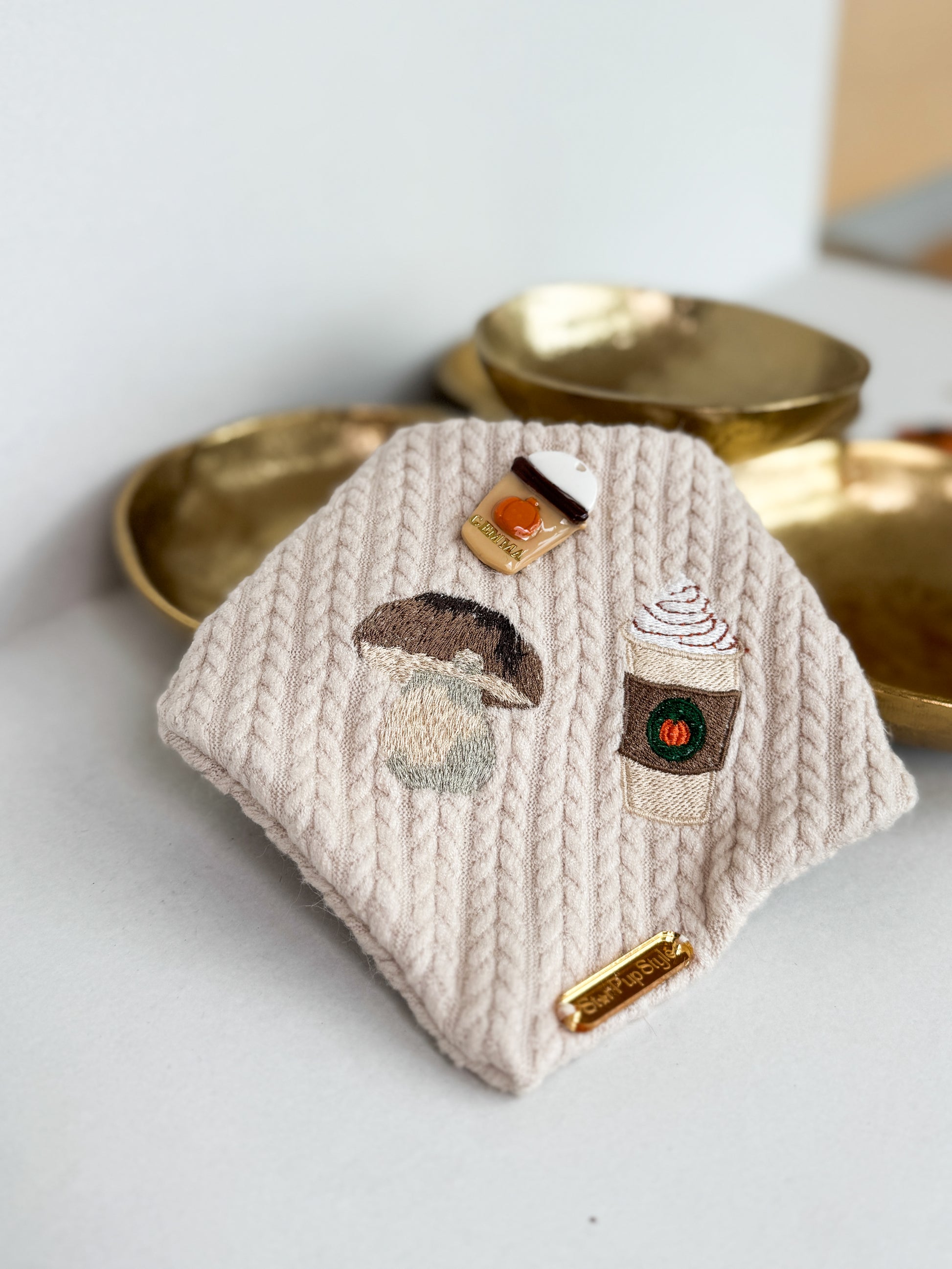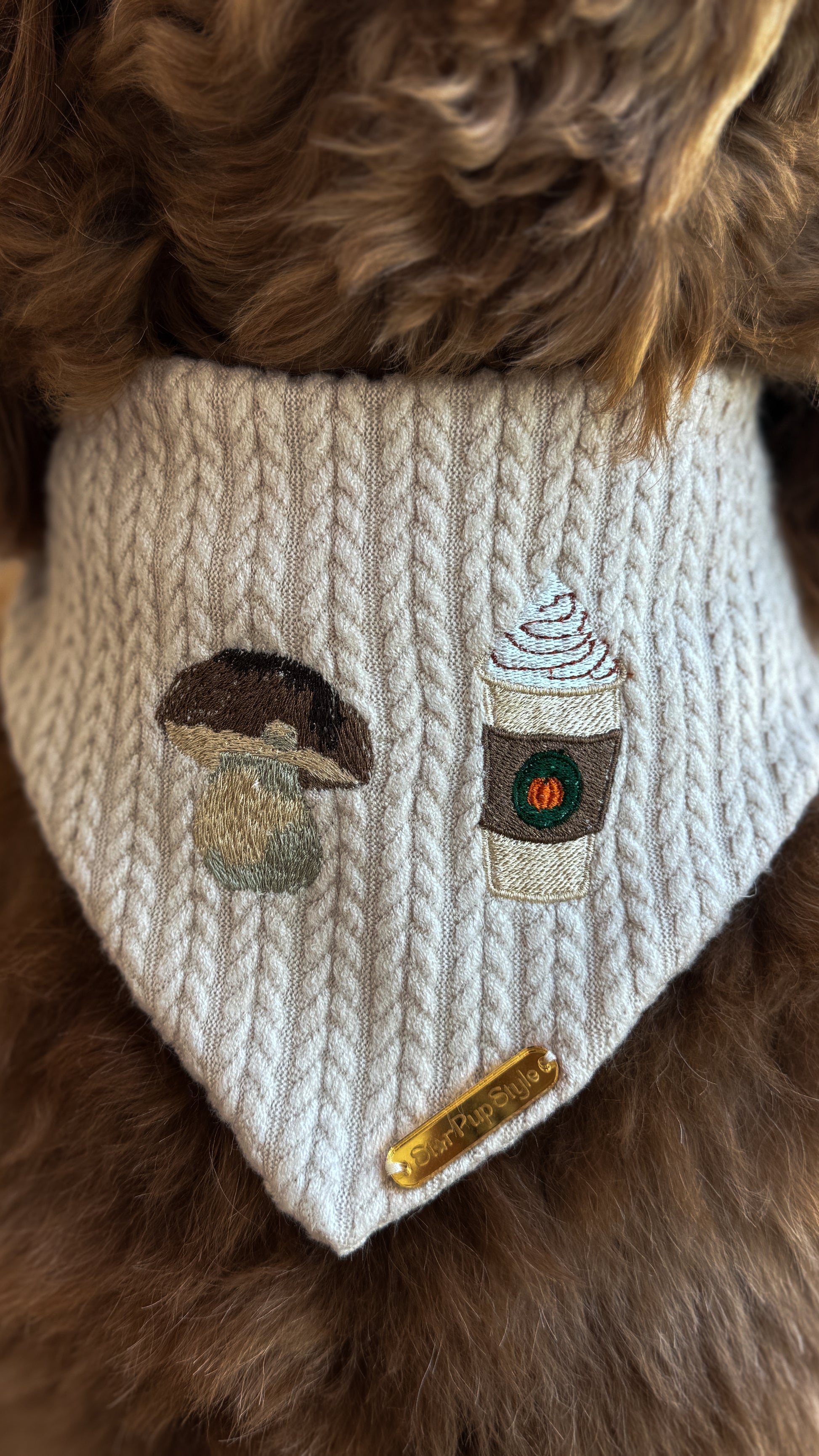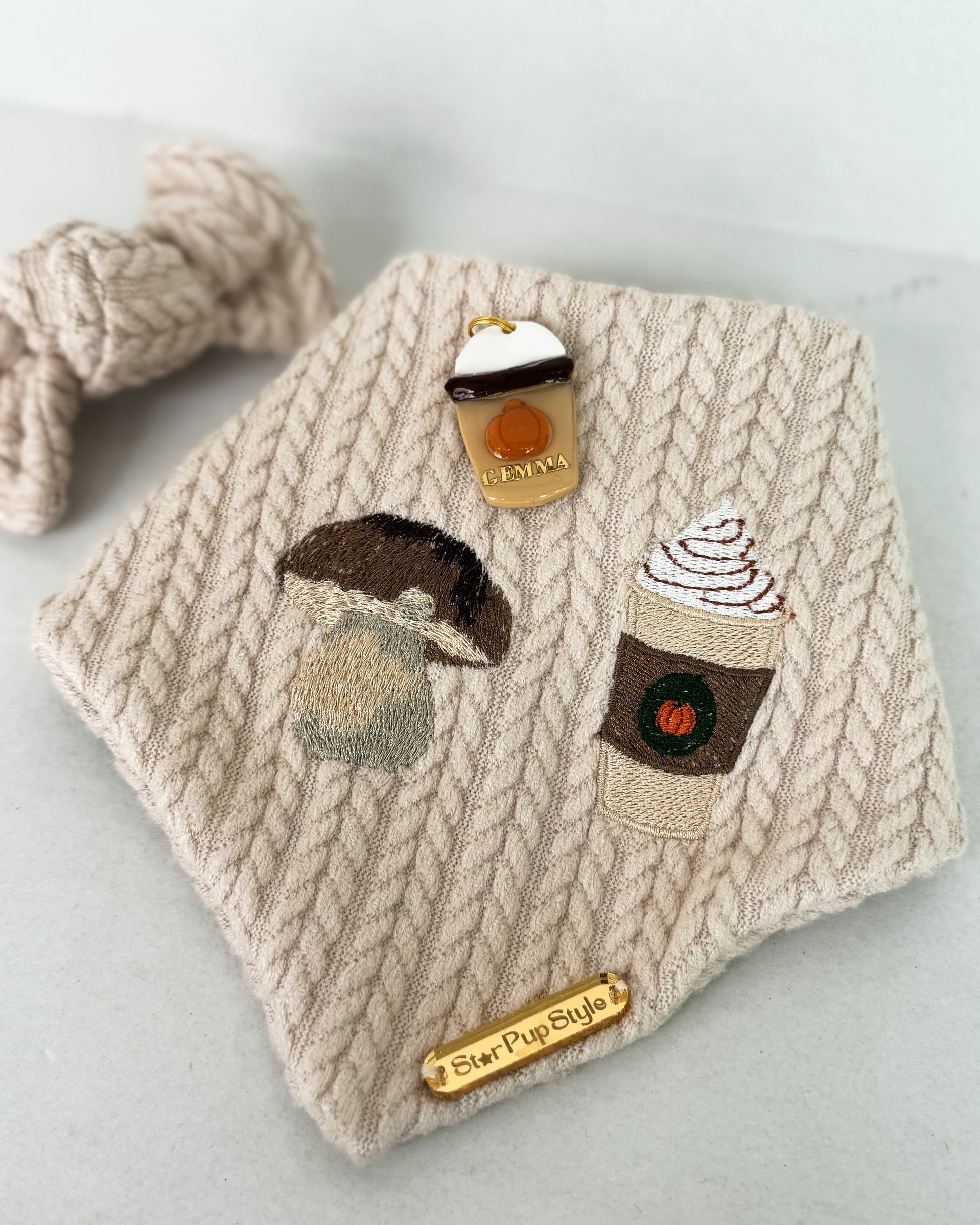 German for “Love of the Forest.” This special bandana design carries the spirit of autumn and the memories that shaped it. Inspired by my childhood in Germany, where crisp mornings were spent foraging porcini mushrooms with my dad and cozy evenings ended with my mom cooking our finds, WALDLIEBE is both personal and symbolic. The embroidery pairs a porcini with a pumpkin spice latte, a nod to the traditions I grew up with and the comforts I’ve embraced here in Florida. A meaningful piece that blends heritage, memory, and a love of fall.